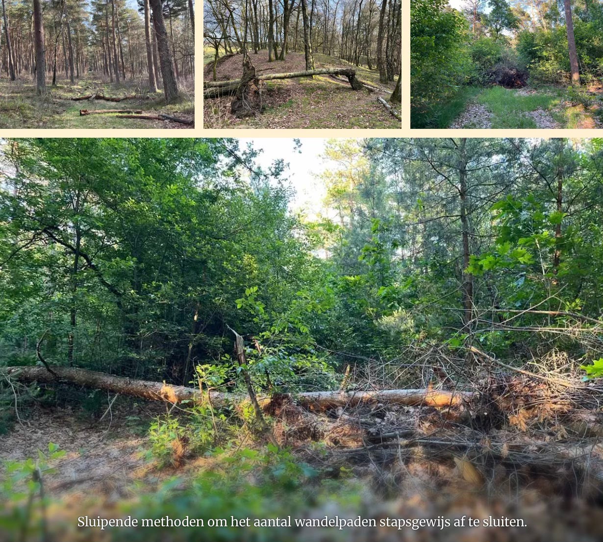 Velen zullen de toenemende restricties bij het betreden van de natuur herkennen. Ooit wandelpaden die onder water zijn gezet, bomen die over paden zijn gelegd, meer verbodsbordjes, afsluiting parkeerplaatsen en doorrijmogelijkheden zoals bij de Arnhemse Posbank.